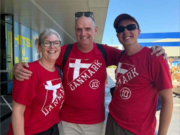 May-Brit and her family were proudly sporting Denmark’s flag on their shirts as they cheered for the Danes three days in a row.