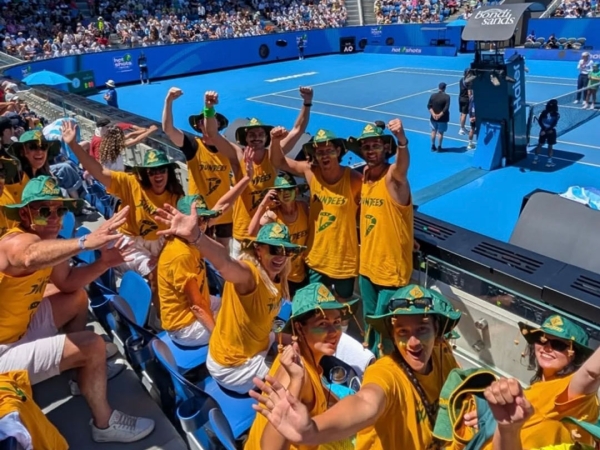 The green and gold have taken over Melbourne Park, and no group is more enthusiastic than ‘The Dundees,’ an Aussie fan club making waves on social media. Gareth and Patrick, two proud members, are all about bringing the hype for Australian players.