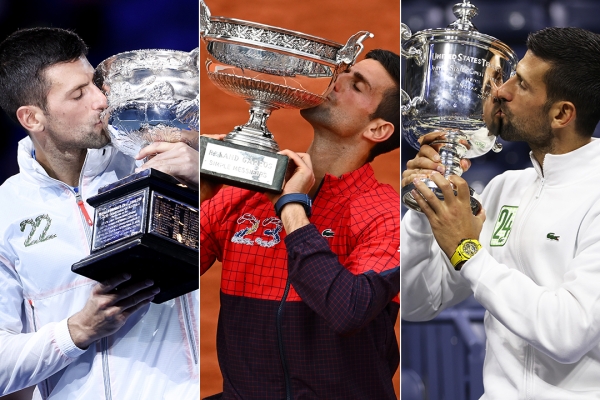 Novak Djokovic has won three major titles in 2023, (from L-R) at the Australian Open, Roland Garros and the US Open. [Getty Images]